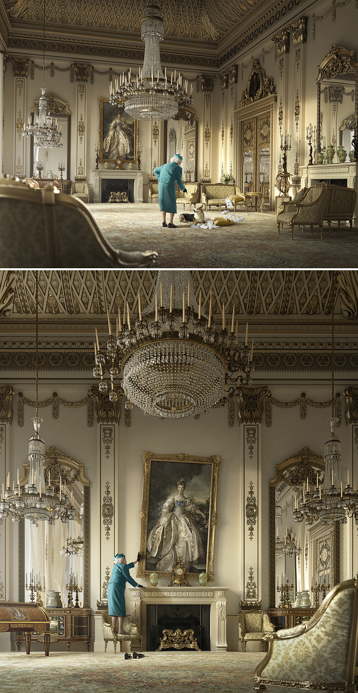 After weeks of planning and countless hours in post-production (this entire room was created in CGI), my collaboration with the incredible Robert Frolich at Filtre Studio on our “Queen For A Day” series is almost complete. It’s part of a bigger project that we call “Lesser Known Moments in History” that will feature famous people in unexpected situations.